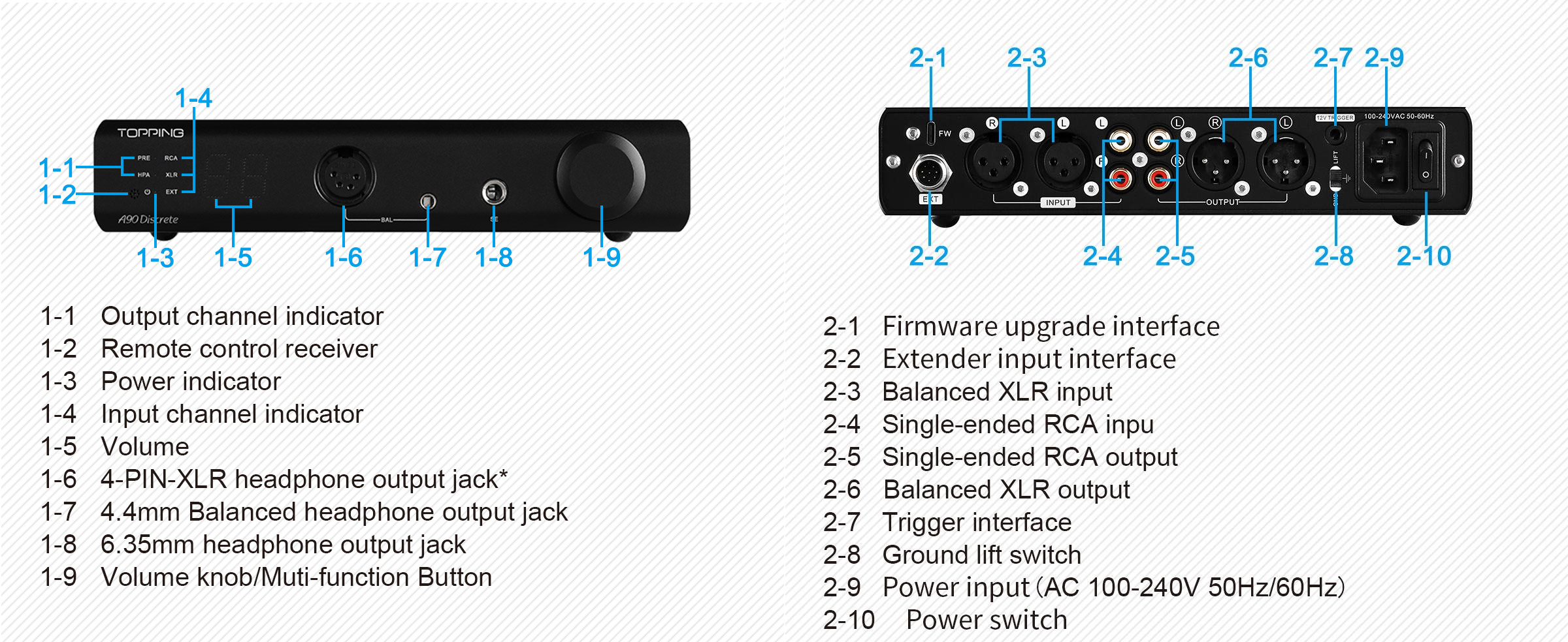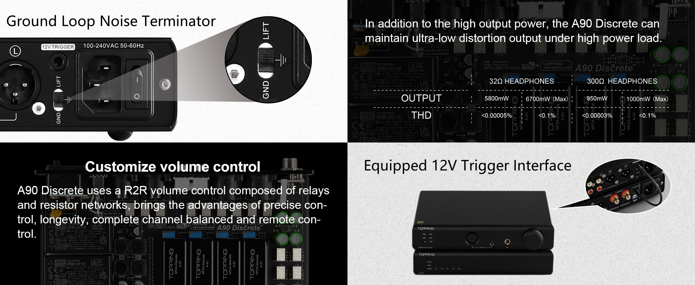 - The TOPPING A90 Discrete has two gain options, which enough tocover a wide variety of headphones: low gain to drive the IEMs with high sensitivity, and high gain to drive full-sized over-ears.Combined with the 0.2uVrms ultra-low noise, even sensitive IEMs will not suffer from any noise.