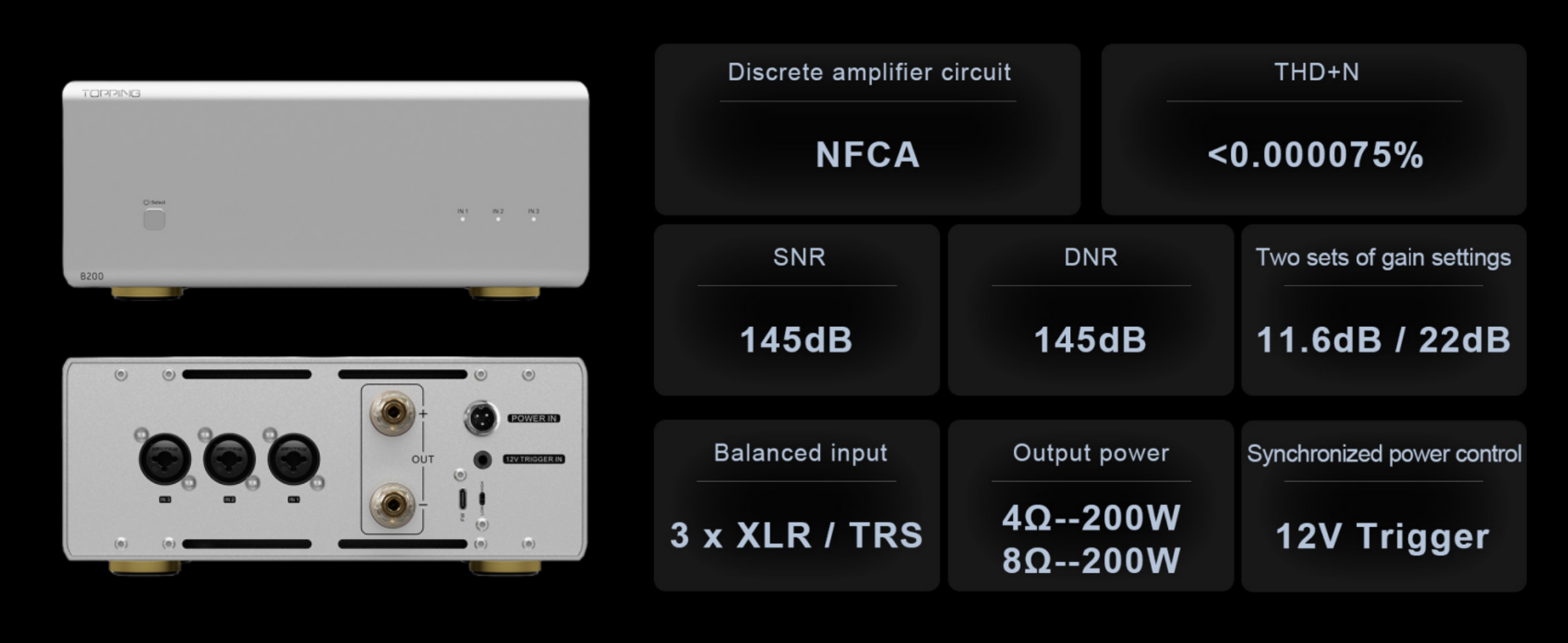 - The newly developed NFCA discrete power amplifier reaches a new level of pristine sound processing and reproduction.TOPPING B200, with its unprecedented 200W performance, will bring you pure auditory enjoyment.