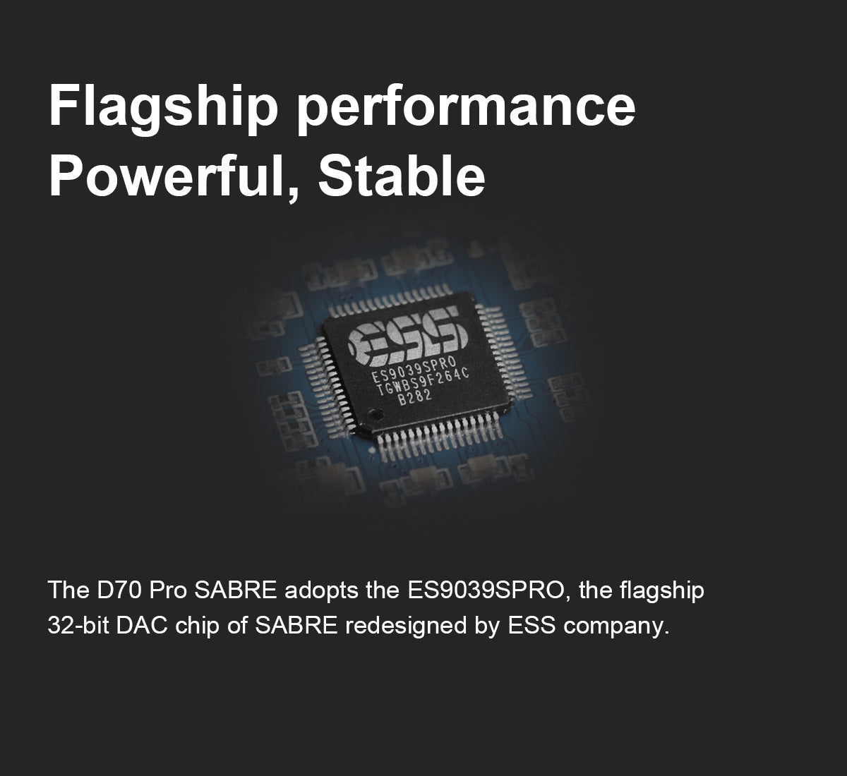 The D70 Pro OCTO features 8 Cirrus Logic CS43198 DAC chips, supporting PCM768kHz/32bit and DSD512, which ensures exceptional detail, clarity, and fidelity in audio reproduction. This guarantees a true-to-source listening experience, bringing out even the most subtle nuances in music.