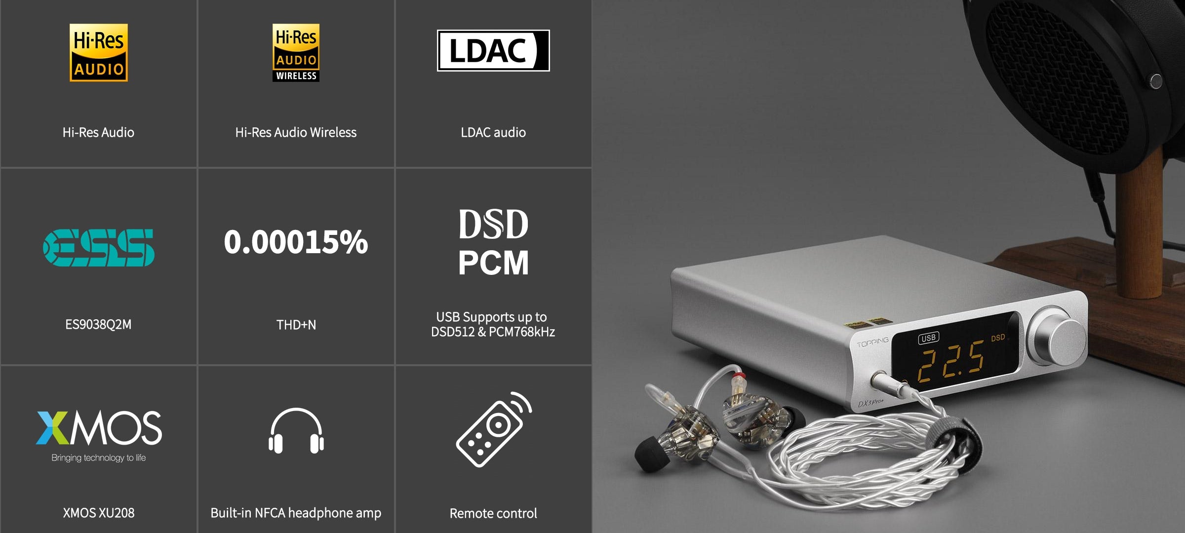 - The TOPPING DX3Pro+ is Hi-Res Audio Wireless and LDAC certified. Using the latest QCC5125 chipset, it supports LDAC, AAC, SBC, APTX, APTX LL, and APTX HD. For superior Bluetooth sound, the built-in DAC of the QCC5125 is bypassed, connecting its digital signal to the ES9038Q2M for decoding.