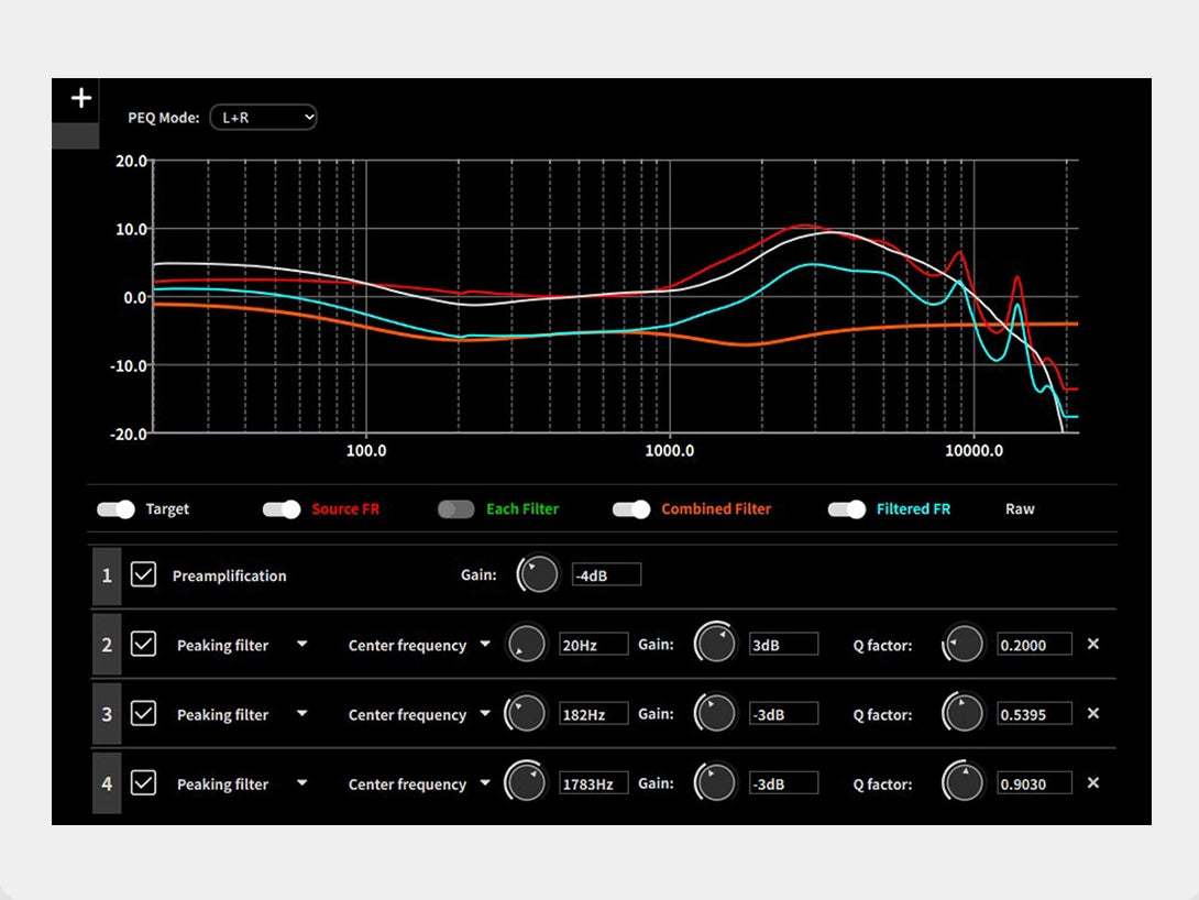 - Topping's brand new PEQ algorithm and desktop software allow you to fine-tune the frequency, gain, and bandwidth of each PEQ band.