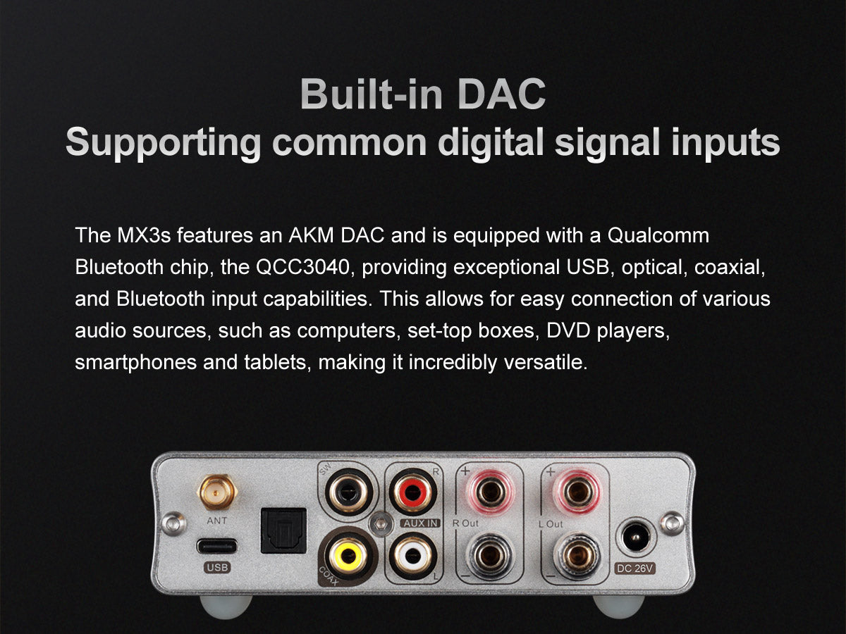 Yes, the MX3s works as both a speaker amplifier and a headphone amplifier. It delivers 62W x2 (4Ω) / 30W x2 (8Ω) for speakers and 700mW x2 for headphones, making it a versatile solution for different listening setups.