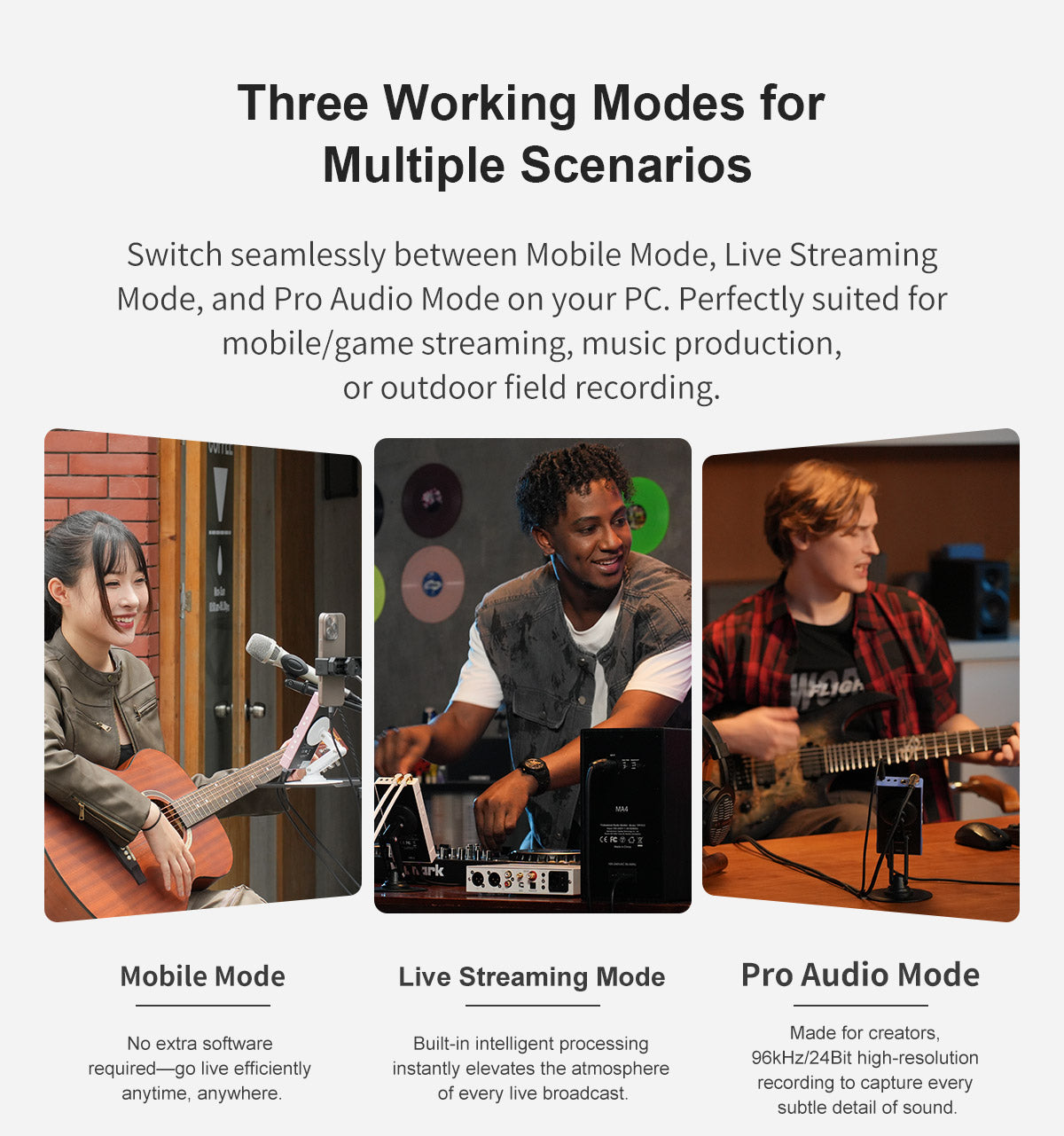 This isn't just a sound card or audio interface, but a portable, all-in-one tool that integrates direct mobile phone connectivity, live streaming optimization, and DAW production support.
